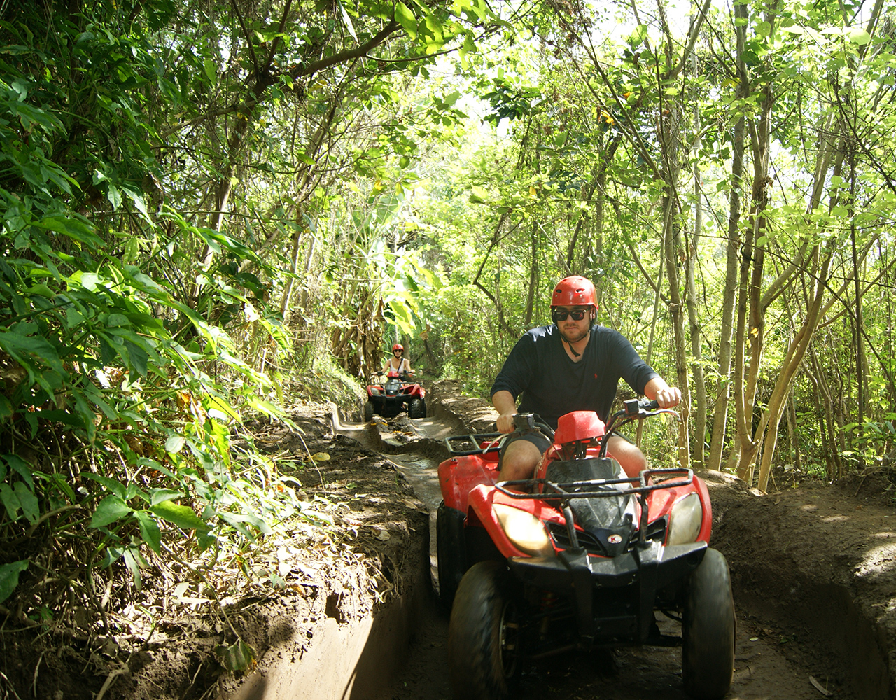 • Feel an adrenaline rush as you ride an ATV through the lush jungle terrain