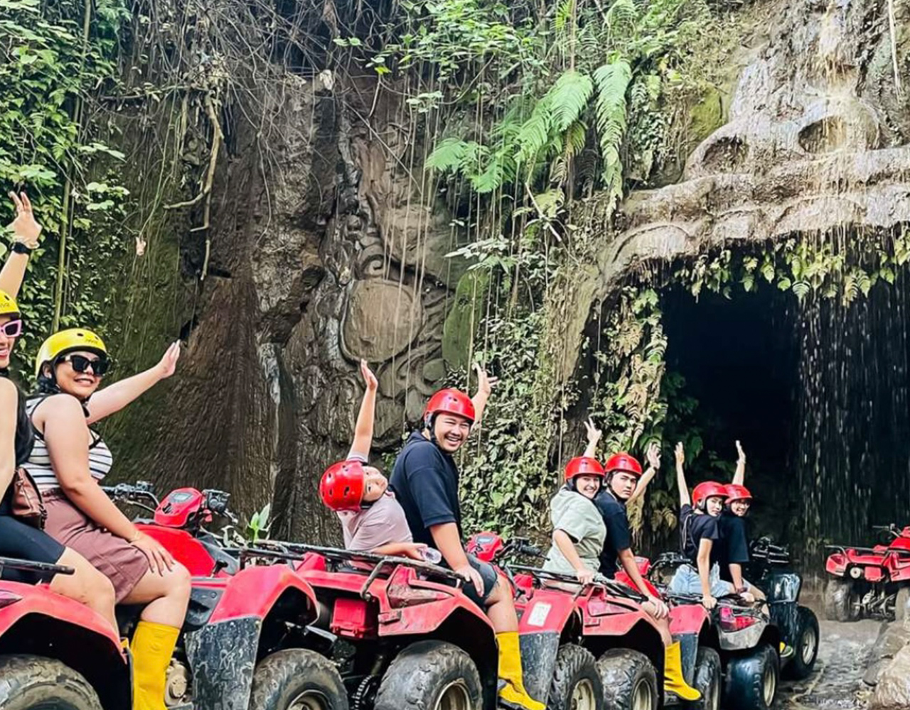 Starting with pick-up from the airport or meeting directly at the base camp of the activity provider (depending on the option chosen). Listen to the briefing and wear all necessary safety equipment before you leave. Take a guided ATV adventure in the jungle near Ubud. Choose between a solo or tandem ride, follow your guide through During the trip, you will pass waterfalls, tunnels, rice fields, farms, jungle, and a very lush village. Before the ATV adventure, enjoy the food that we provide for free, the only one that provides free noodles and fried rice from all ATV providers in Ubud, the price is very affordable and highly recommended for your adventure, it is very impressive. The adventure lasts 1.5 hours and takes place in Silakarang Village, Ubud. A long route with challenging tracks and stunning natural scenery. Our program is suitable for experienced and inexperienced riders, from 6 to 65 years old. Book your Adventure now.
